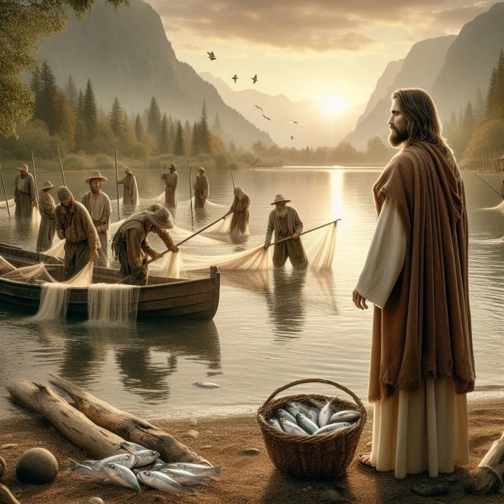 Przechodząc obok Jeziora Galilejskiego, ujrzał Szymona i brata Szymonowego, Andrzeja, jak zarzucali sieć w jezioro; byli bowiem rybakami. I rzekł do nich Jezus: «Pójdźcie za Mną, a sprawię, że się staniecie rybakami ludzi». A natychmiast, porzuciwszy sieci, poszli za Nim.
